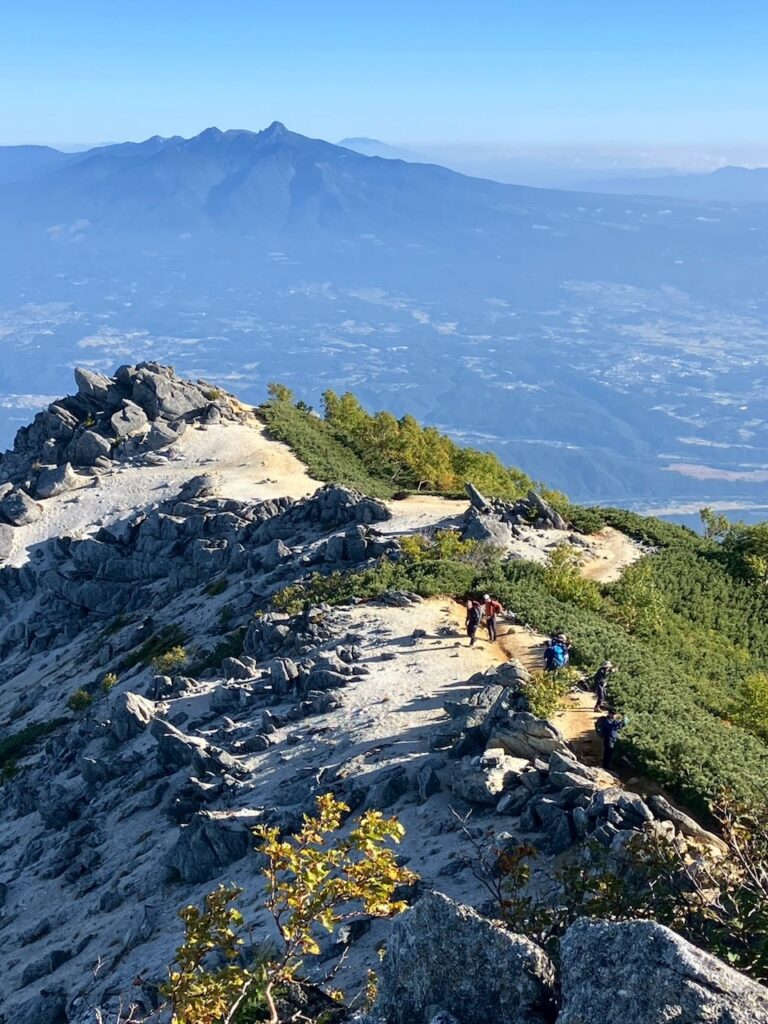 クライマックスは、3000m級の尾根を縦走しながら上野さんの心を動かした風景、鳳凰三山の絶景を身体中で浴びます! 露出した花崗岩の岩肌は柔らかくも力強く隆起し、猛々しい石柱となってせり立つオベリスクの姿には自然への畏敬の念を抱かずにはいられません。自然の姿に神を見出してきた日本人の自然観は、自然物を敬う心として庭園と庭師の職能に表れ、その芸術性を高めてきたのだと肌で感じる体験でした。