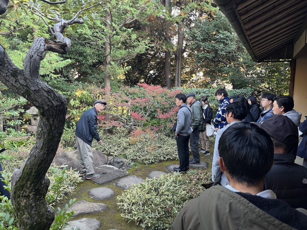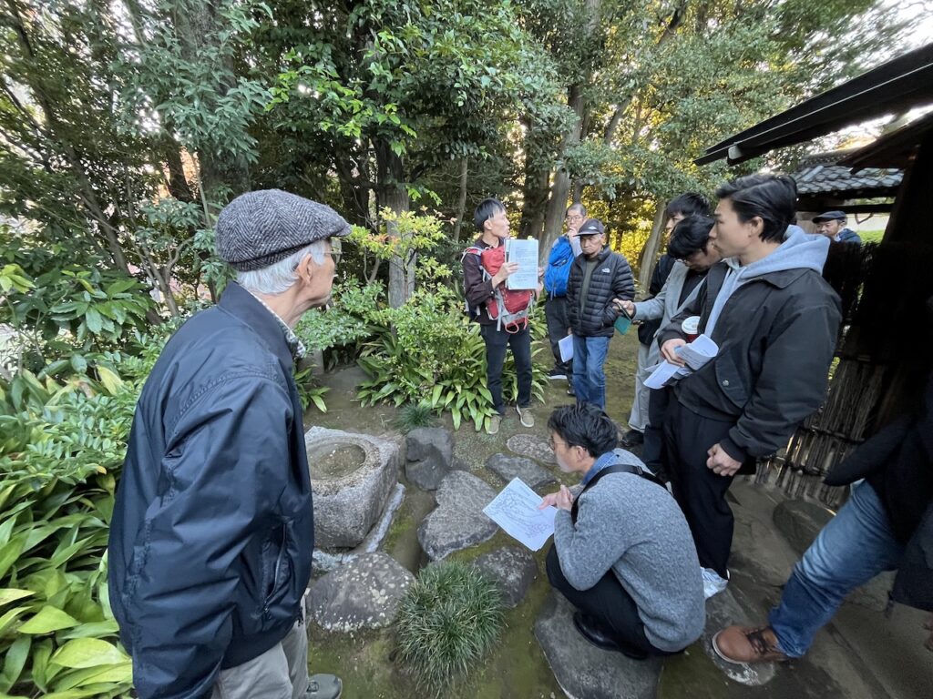 上野さんの優しい笑顔と大きな身振り手振りで伝えてくださる解説に引き込まれているうちに、あっという間に日が傾き、見学会の後には皆で懇親会を行いました。こうして「庭園」を囲んで老若男女が集まることができることに少し不思議さを感じつつ、庭園には普遍の魅力が備わっていることを実感しました。