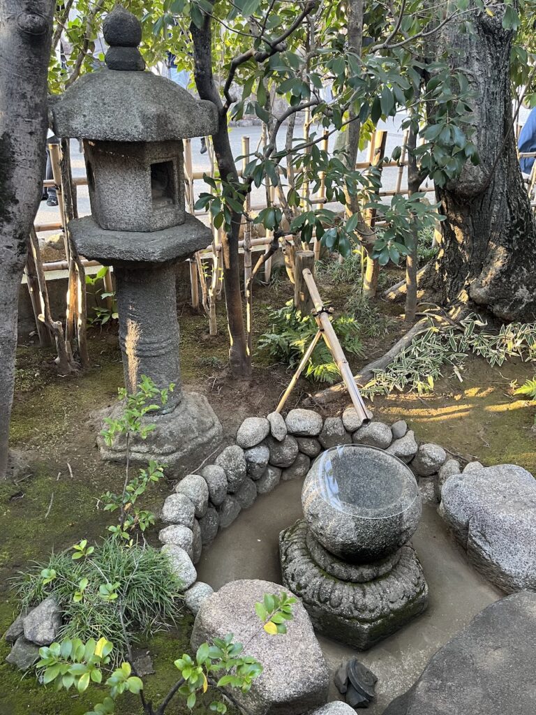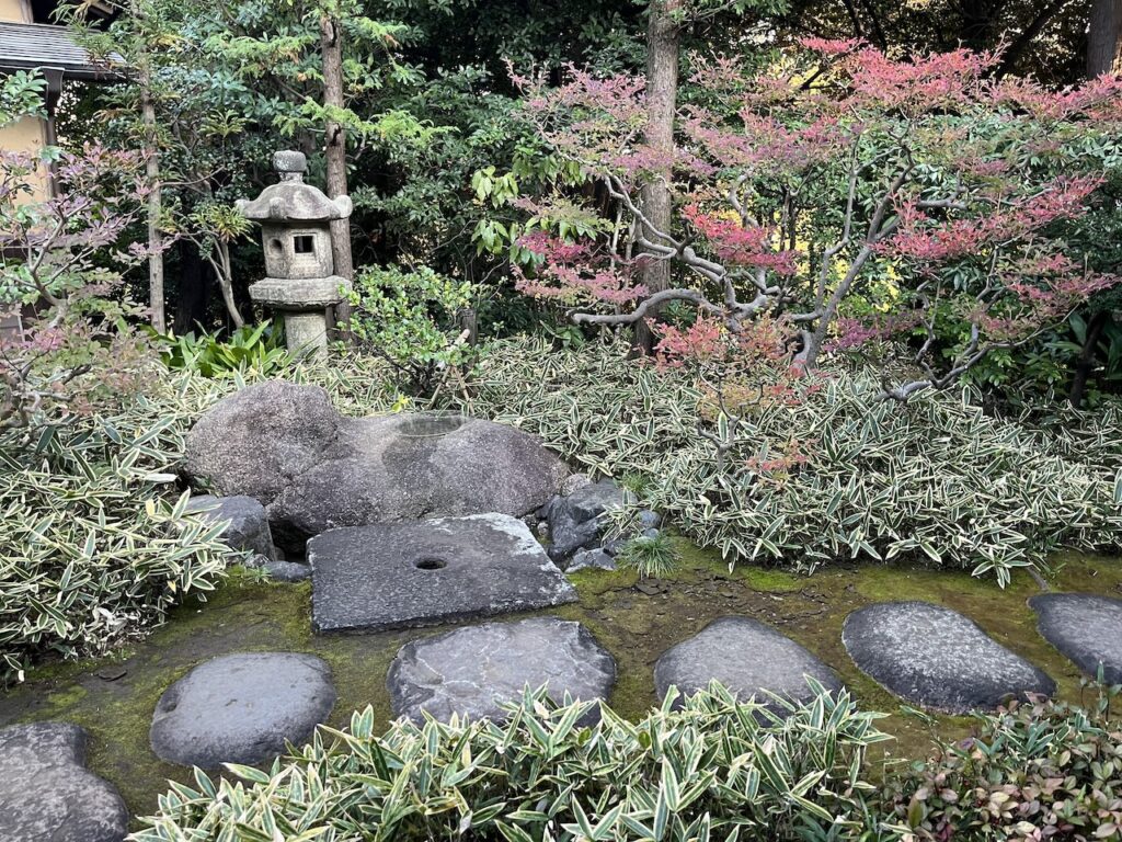 茶室と露路は茶会などで利用する方以外の一般公開はされていませんが、今回は特別に拝見させていただきました。境内にある茶室群は、大正時代から昭和初期の頃に檀家総代を務めていた高橋箒庵が、護国寺を東京の茶の本山とするべく整備したものだそうです。ただ時が経ち、茶室の修繕や改築などで庭もその形を変えていく中で、それらを現在の姿に整えたのが上野さんです。上野さんはこれら護国寺の茶庭について雑誌の特集の中で、「五代将軍徳川綱吉…近代の大数奇者である高橋箒庵…その遺徳に恥じない茶の庭をつくることに私は専念した。(筆者編、隔月刊誌『庭』no.197より)」と述べておられます。庭を継承することの重責を受け止めて、なおかつご自身の感性を発揮して時流の庭を創作していく、その姿勢に大変感銘を受けました。